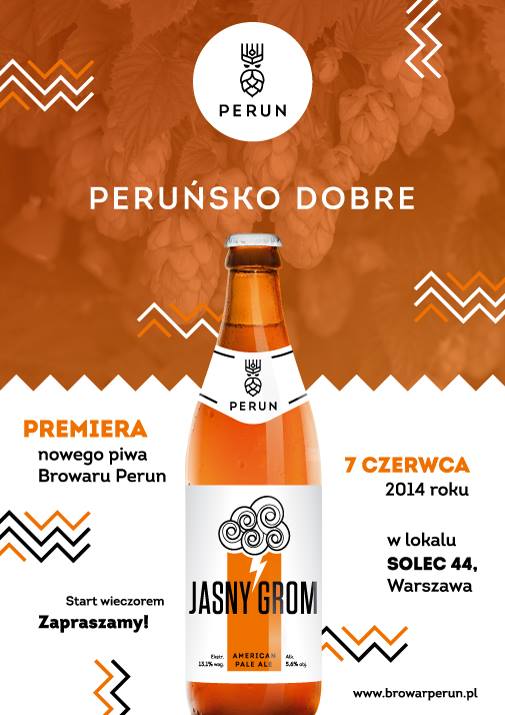 Na debiut wybrany został styl American Pale Ale, a piwo zostało nazwane „Jasny Grom”. Oprawa graficzna robi pozytywne wrażenie swoją oszczędną stylistyką. Zawitałem zatem na Solec 44, gdzie już od samego wejścia Adam zachęcał do skosztowania gratisowych próbek piwa. Bardzo dobre posunięcie. Problem pojawiał się jednak w momencie, gdy chciało się zakupić piwo. W takim przypadku osiągalna była wyłącznie wersja butelkowa. Specyficzne rozwiązanie wymuszone zostało umowami wiążącymi lokal. Wiem jednak, że wkrótce Perun ma pojawić się tu na stałe w wersji lanej. A jak wypadło samo piwo? Szczegółową ocenę zamieszczę niebawem ale można powiedzieć, że jest nieźle. Przechylone trochę w stronę słodowości, aczkolwiek z wyczuwalną goryczką w posmaku. Wersja beczkowa smakowała mi bardziej, była świeższa, z zauważalnym aromatem słodkich owoców tropikalnych. Bardzo treściwe, może nawet trochę zbyt ciężkie jak na ten styl. W kontekście problemów podczas fermentacji o których opowiadał mi Adam należy docenić, że to piwo wyszło w tak dobrej formie.