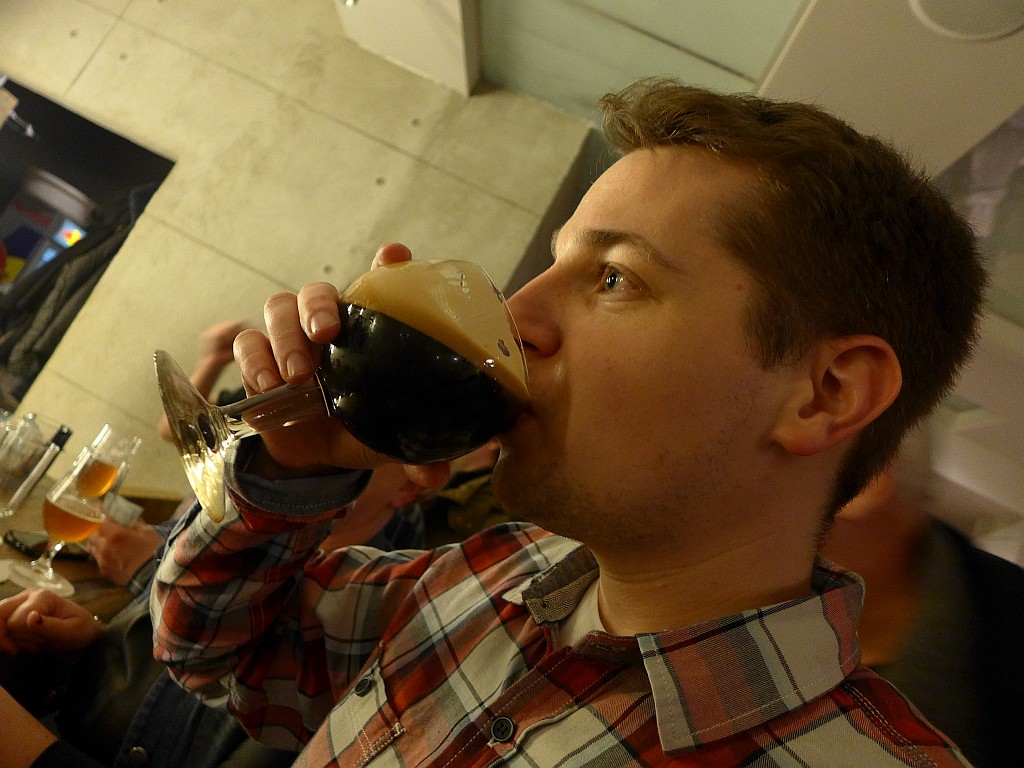 Łukasz Zarębski popija ciemnego Pilsnera