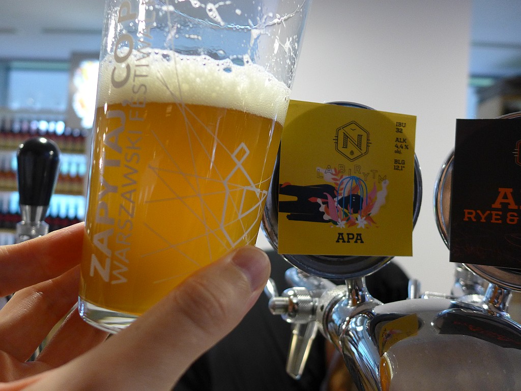Zaczynamy od Labirytm z Browaru Nepomucen. Zresztą nie może być inaczej skoro na przepastnym stoisku Nepomucenów zazwyczaj zostawiamy swoje klamoty 😉 Piwo ma przyjemny, wyrazisty cytrusowy aromat i stonowaną, względnie lekką goryczkę. Tak według mnie powinna smakować idealna APA, wyborny początek!