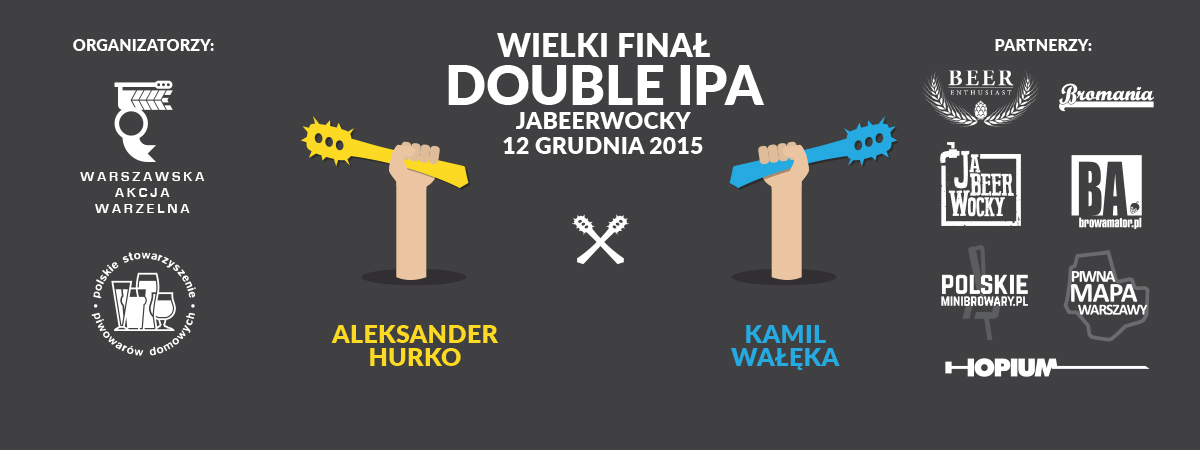 Po kilkumiesięcznych zmaganiach nadszedł czas na wielki finał inauguracyjnej edycji Warszawskich Bitew Piwnych. Decydujące rozstrzygnięcie miało zapaść między Alkiem Hurko oraz Kamilem Wąłęką. Pikanterii sprawie dodawał fakt, że Kamil jest głównym organizatorem imprezy. Z powodów wizerunkowych lepiej zatem byłoby, aby wygrana przypadła konkurentowi Kamila. Ale wszystko miało wyjaśnić się na placu boju gdzie ocenialiśmy piwa w stylu Double IPA. Miejscem finałowej bitwy było Jabeerwocky i to był słuszny wybór, bo na wydarzeniu mimo względnie wczesnej pory pojawiło się mnóstwo osób.