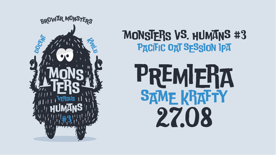 3 sierpnia z samego rana mocna ekipa w składzie Jan Gadomski, Marcin Kwil oraz Docent rozpoczęła warzenie wspólnego piwa. Przyczynkiem do tego były wspólne urodziny lokalu Same Krafty oraz Polskie Minibrowary.pl. Janek przy tej okazji zaproponował uwarzenie piwa w serii Monsters vs Humans, gdzie dwa pierwsze piwa serii to współprace z Markiem Kamińskim oraz Kacprem Kulpą. Jako docelowy styl wybraliśmy Pacific Oat Session IPA. Ekstrakt 10,5°. Chmiele: Motueka, Rakau, Galaxy, Nelson Sauvin. Zasyp: słód pilzneński, słód owsiany Golden Naked Oats, płatki owsiane. Drożdże płynne London Fog III. Bez laktozy, bez maltodekstryny.