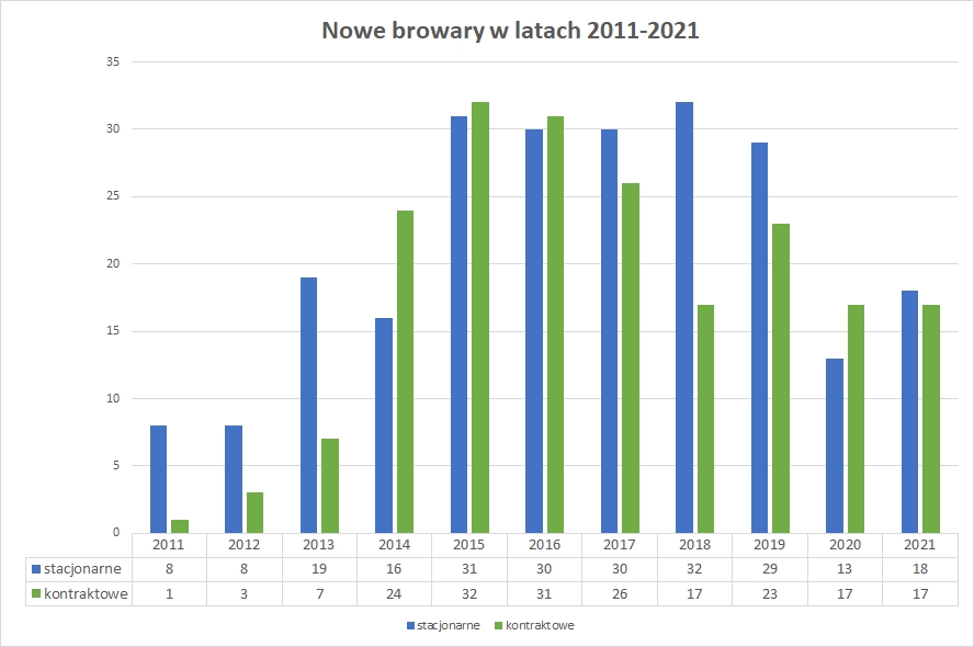 W roku 2021 warzenie rozpoczęło 18 browarów stacjonarnych (9 rzemieślniczych i 9 restauracyjnych). To pozytywne odbicie o blisko 40% w stosunku do roku poprzedniego. Jednak o taką samą wartość procentową jest to mniej w porównaniu do lat przedpandemicznych, kiedy startowało około 30 nowych warzelni.